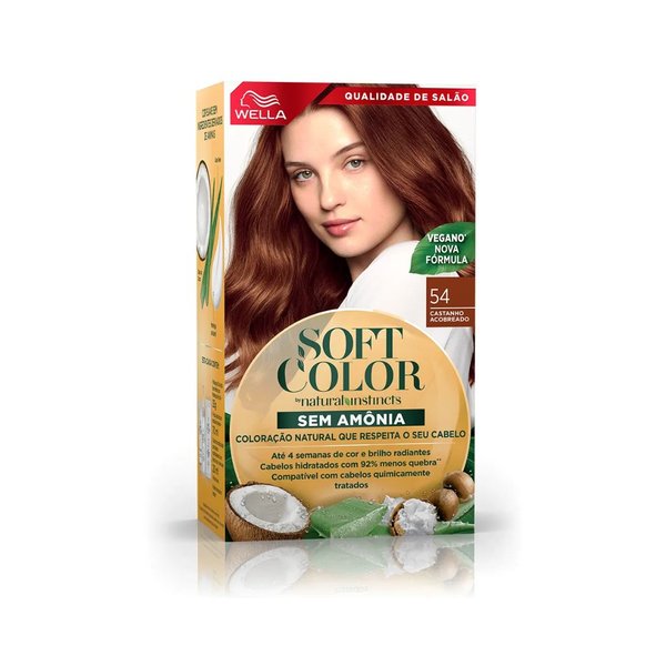 - Soft Color é a coloração que te dá reflexos com brilho radiante, 90% menos queda de fios e duração de até 29 lavagens. A fórmula da Tinta de Cabelo Soft Color não contém amônia e é compatível com cabelos quimicamente tratados. Além disso, possui ingredientes naturais como Aloe Vera, Manteiga de Karitê e Óleo de Coco, que garantem cuidado com seus cabelos, cobertura perfeita dos fios brancos e brilho por até 4 semanas. O kit contém um frasco com a coloração sem amônia, uma emulsão ativadora e um sachê de condicionador que realça o brilho. *Comparado a um cabelo não tratado com o condicionador do kit. Resultados podem variar de acordo com o tipo de cabelo