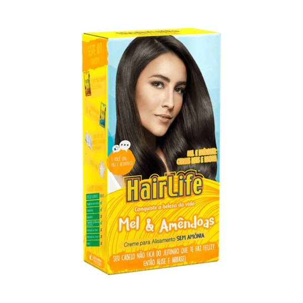 - Enriquecido com Mel Quaternizado, que nutre profundamente os cabelos, e Óleo de Amêndoas, poderoso hidratante e emoliente da fibra capilar, HairLife Mel & Amêndoas é o expert em alisar todos os tipos de cabelos, deixando-os soltos, com balanço e cheios de vida